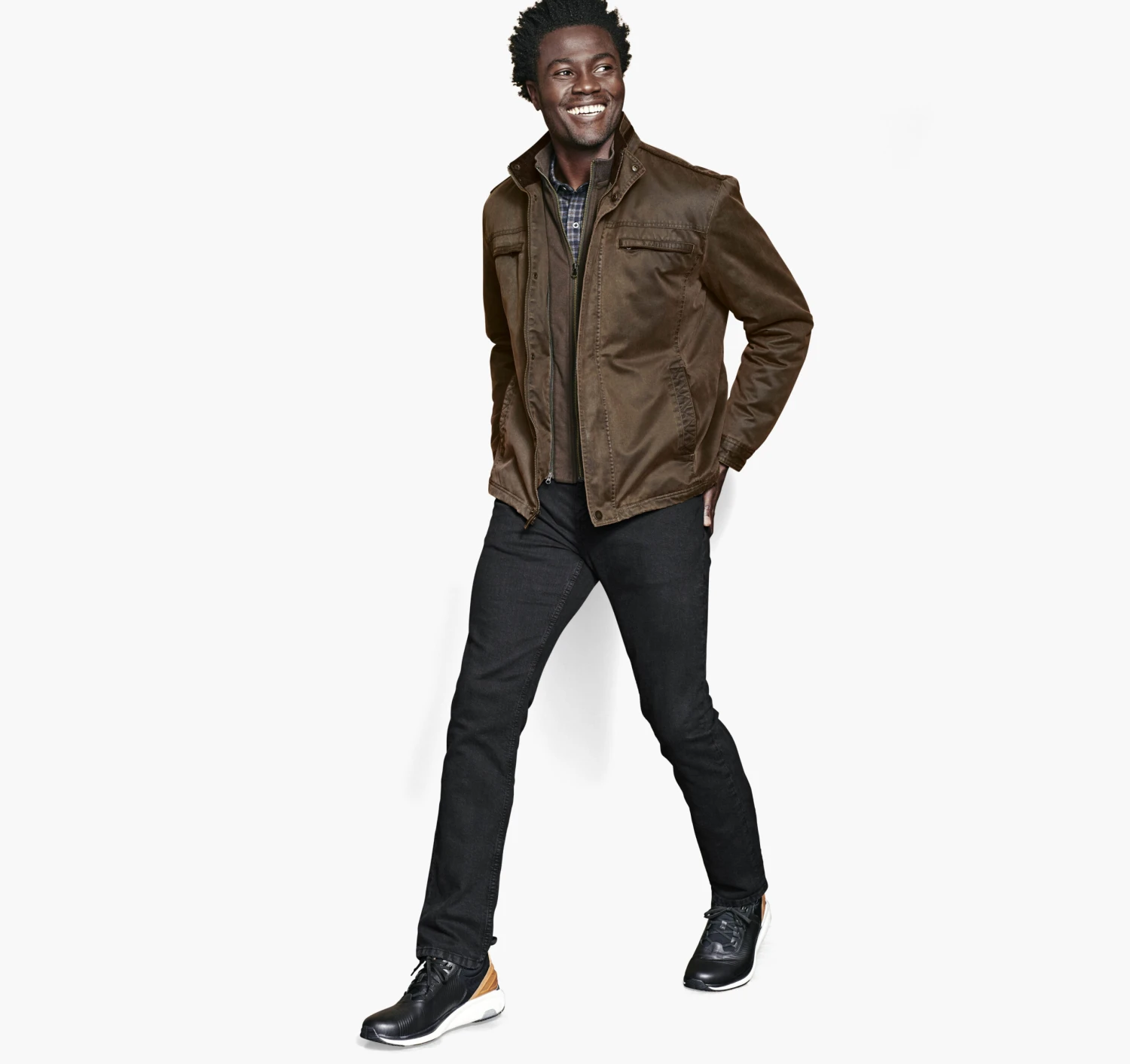 - Side-entry welt pockets.
