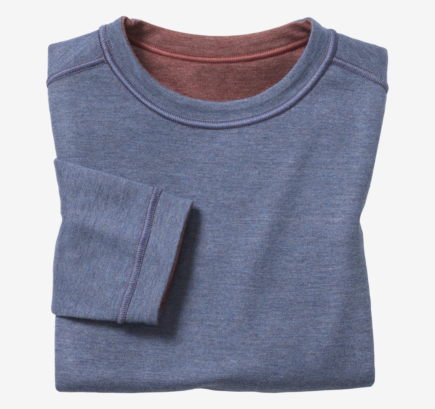 - Soft and light double-faced knit reverses from a solid color to a contrasting heather shade.