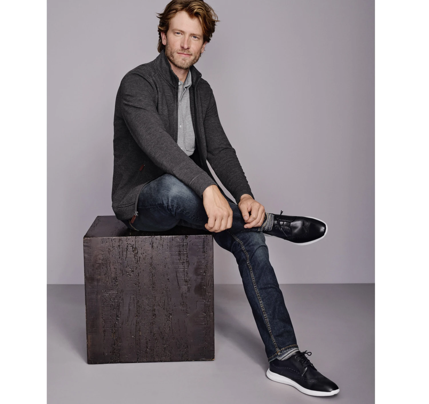 - A soft, season-spanning knit with a tweedy, tonal texture.Â