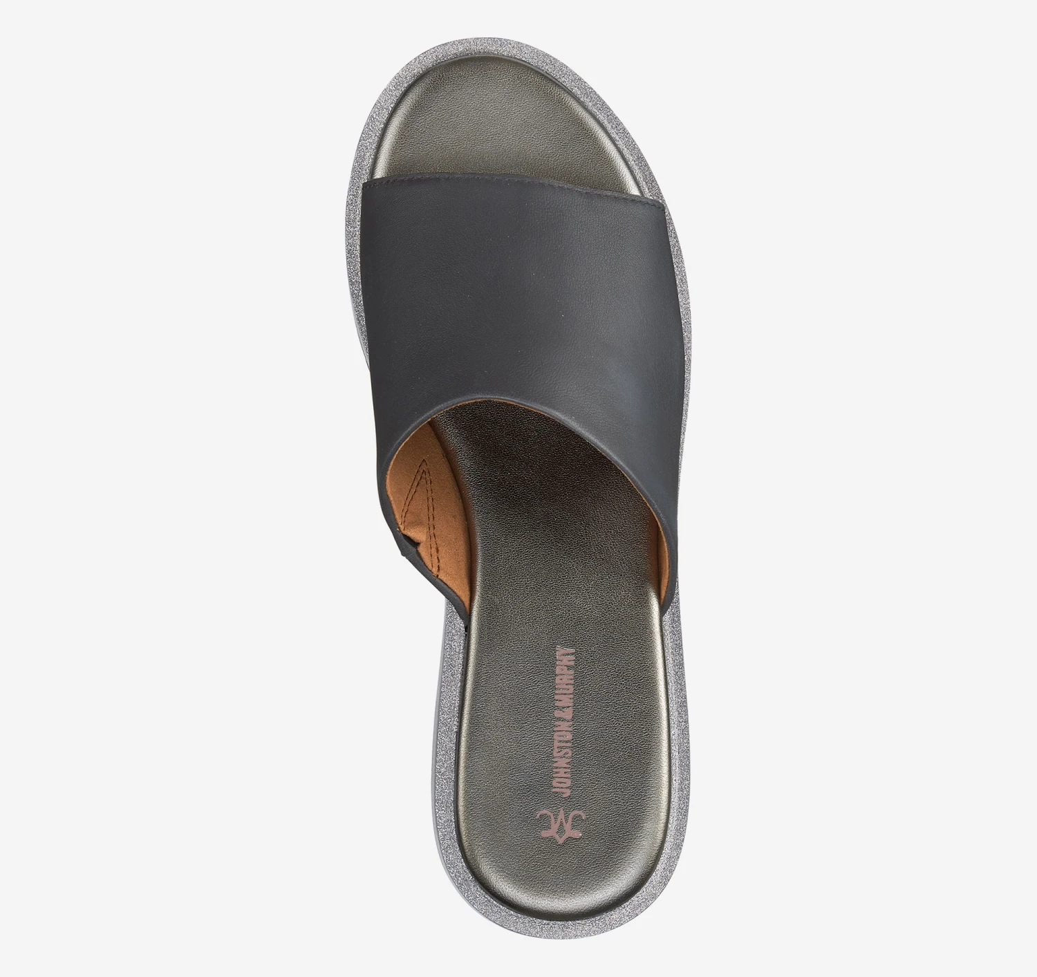 - Cushioned footbed covered in metallic leather offers all-day comfort.