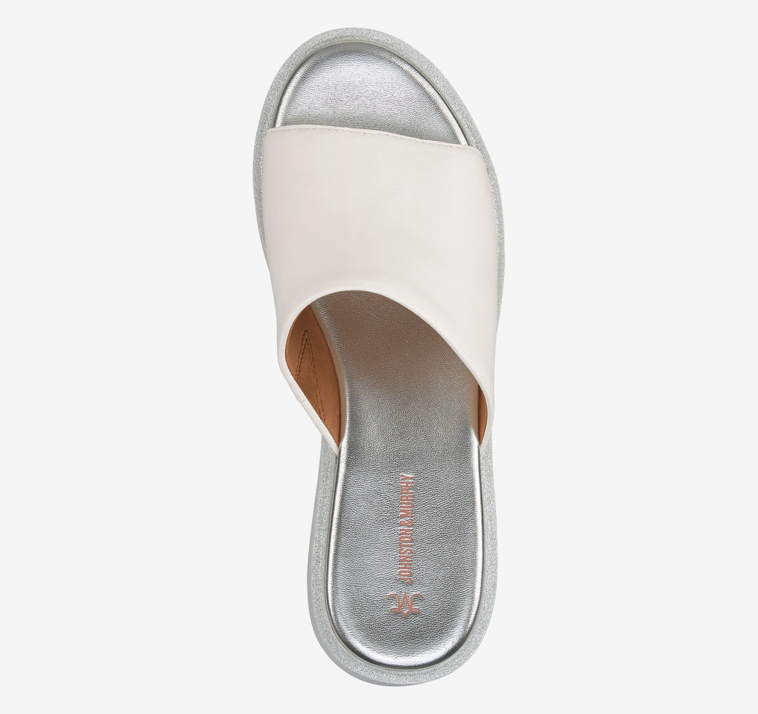 - Cushioned footbed covered in metallic leather offers all-day comfort.