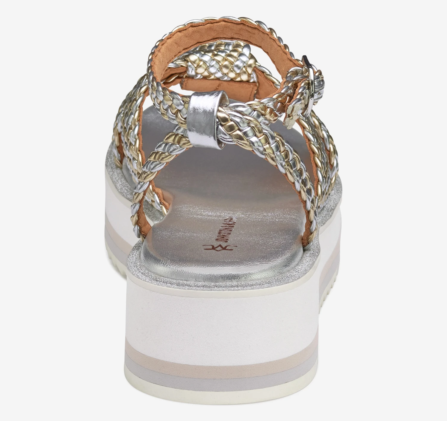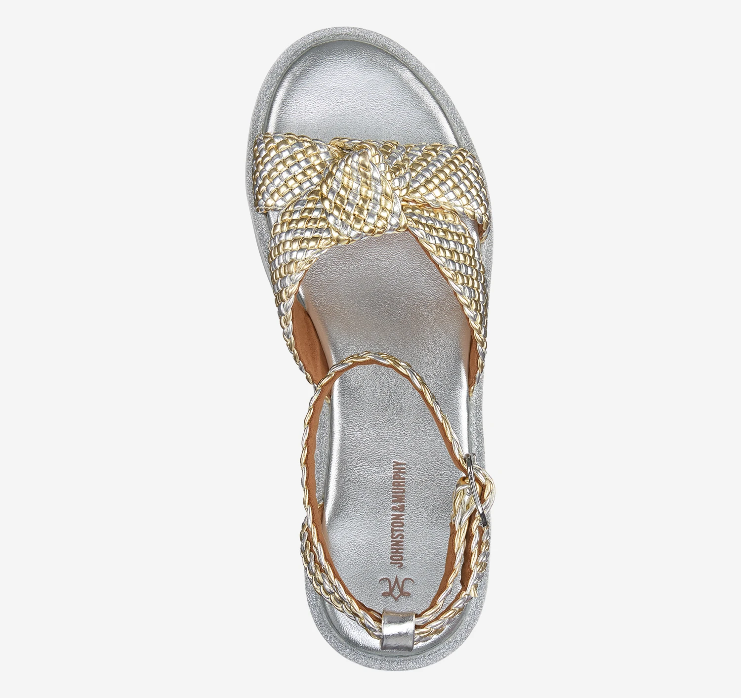 - Cushioned footbed covered in metallic leather feels great all day.