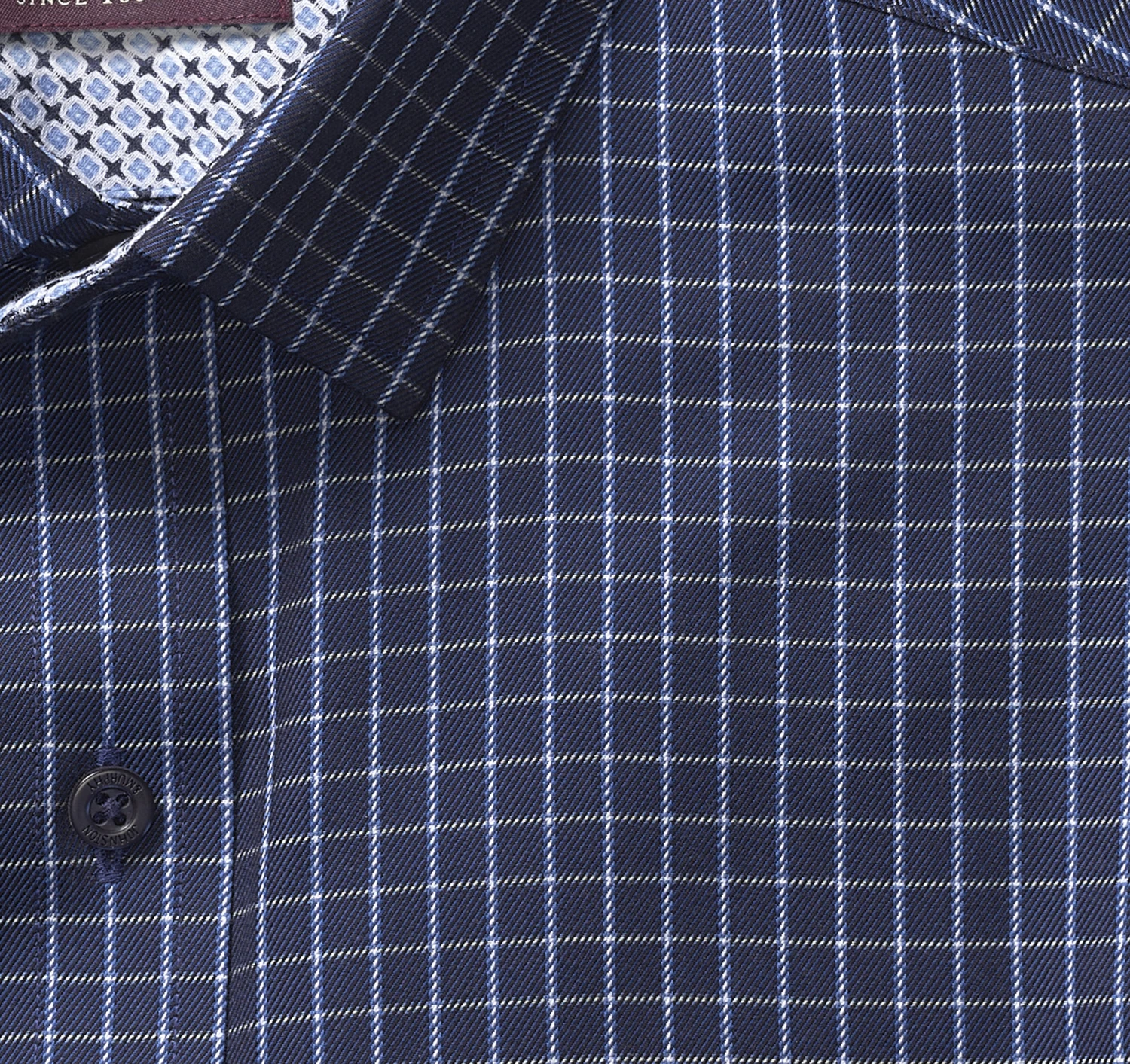 - Contrast facing inside collar and button cuffs on select styles.