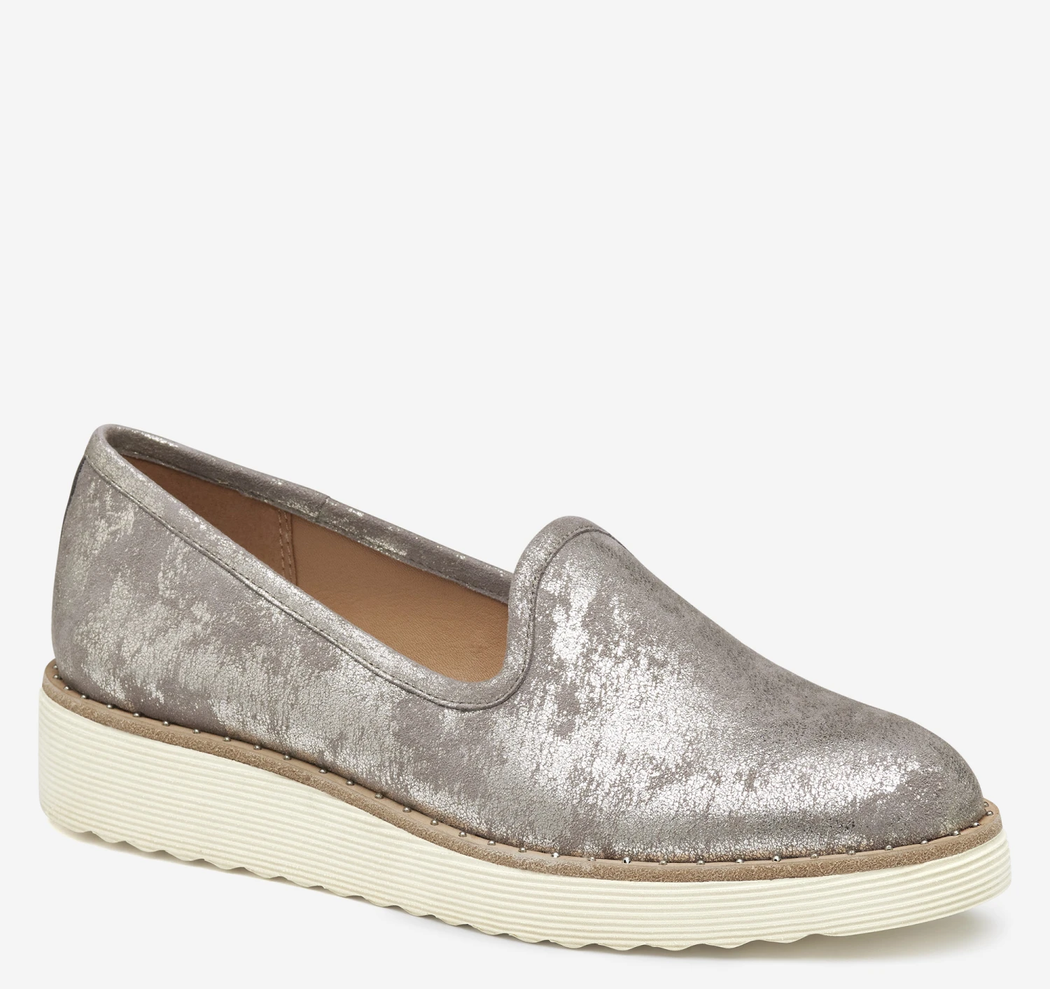 - Slip-on ease in a comfy design to wear just about anywhere, in beyond-basic black or shimmery suede.