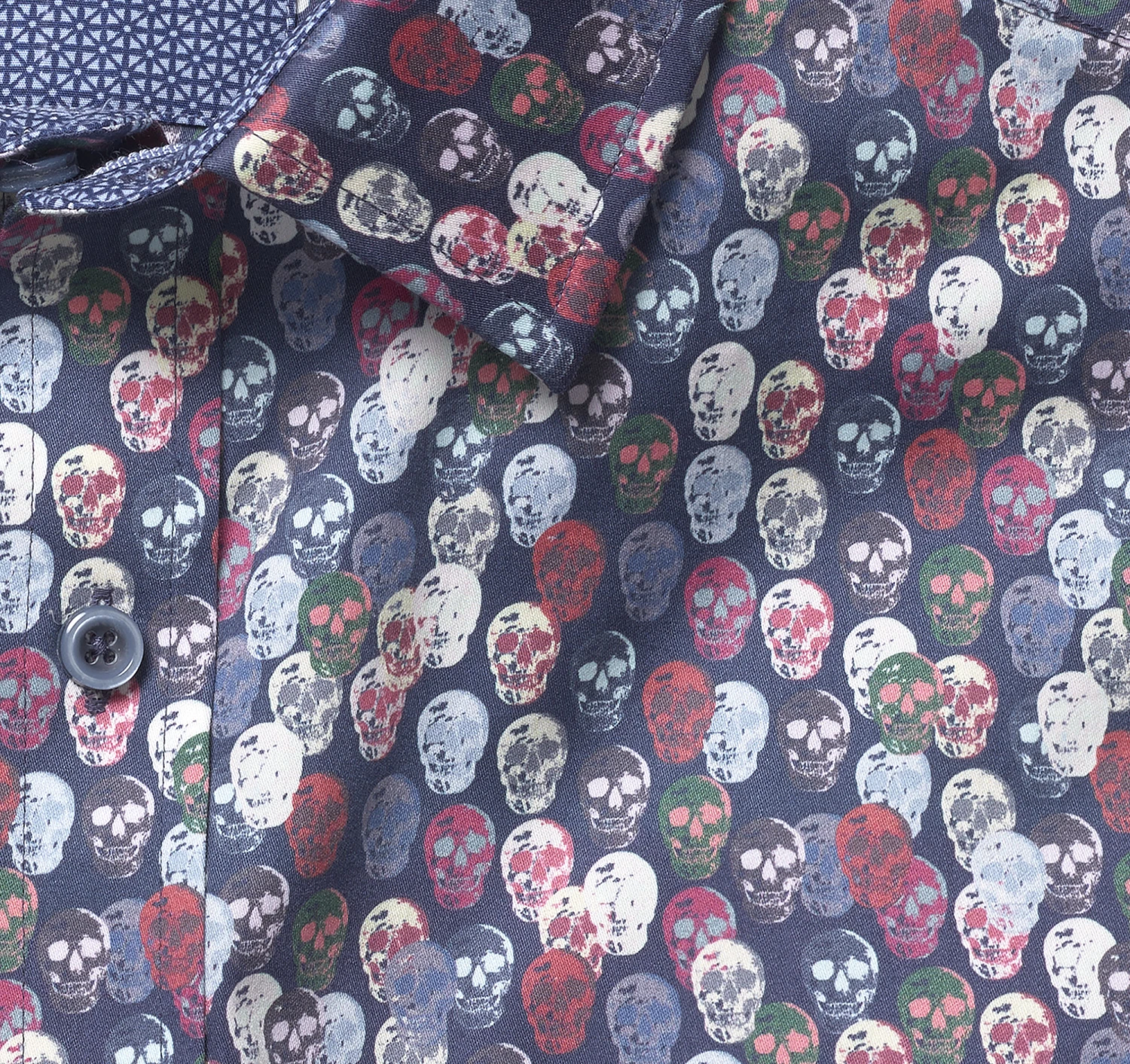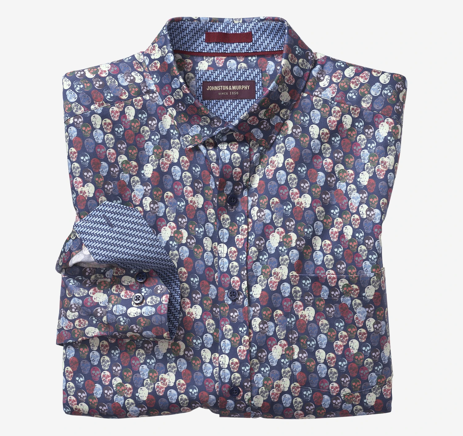 - Point collar with hidden buttons for stay-in-place smoothness.