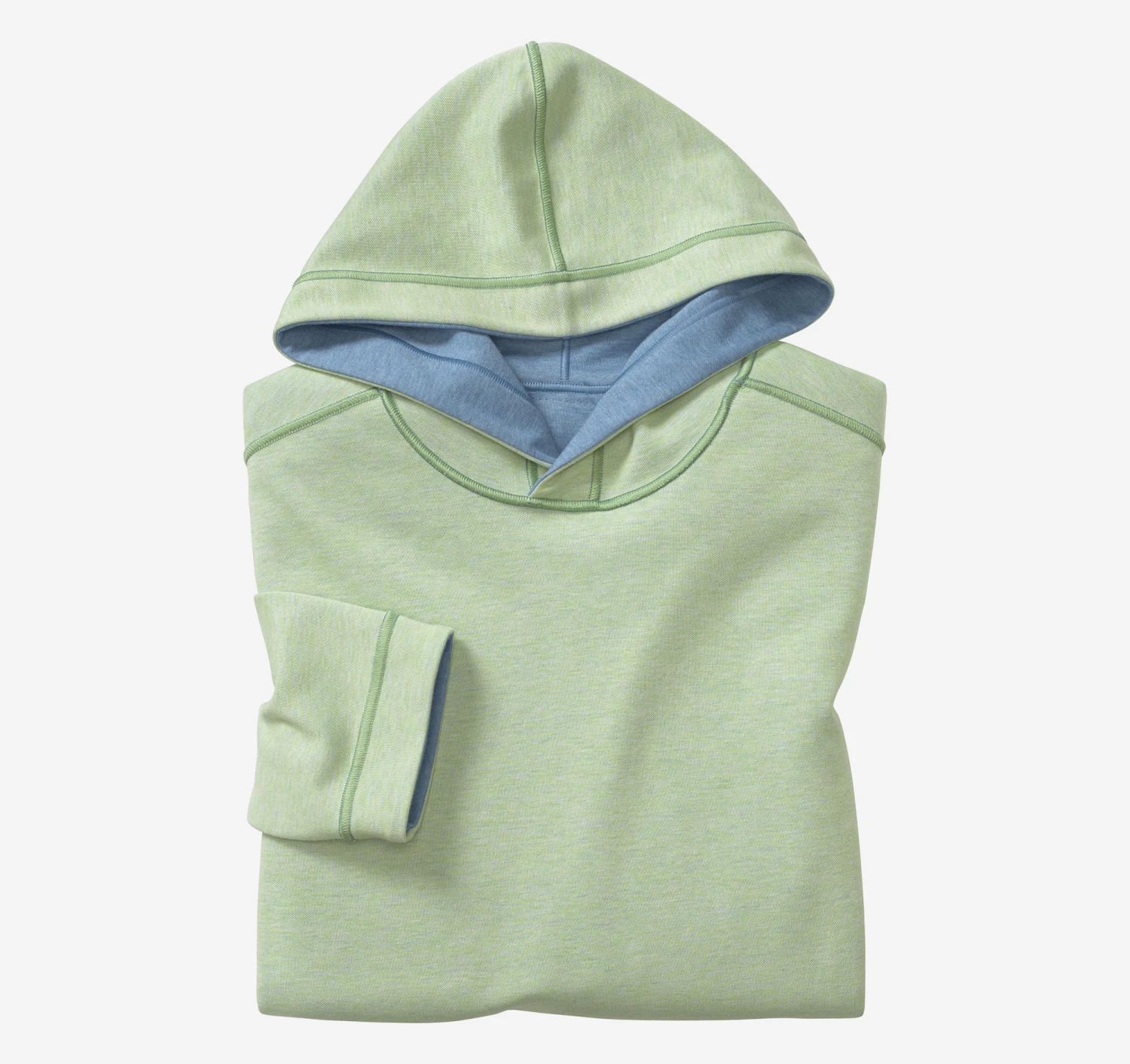 - Soft, lightweight double-faced knit reverses to contrast heathered shade.
