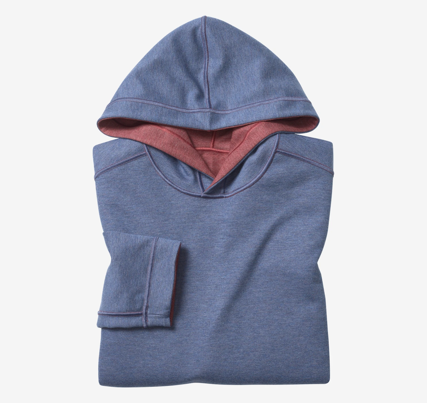 - Soft, lightweight double-faced knit reverses to contrast heathered shade.