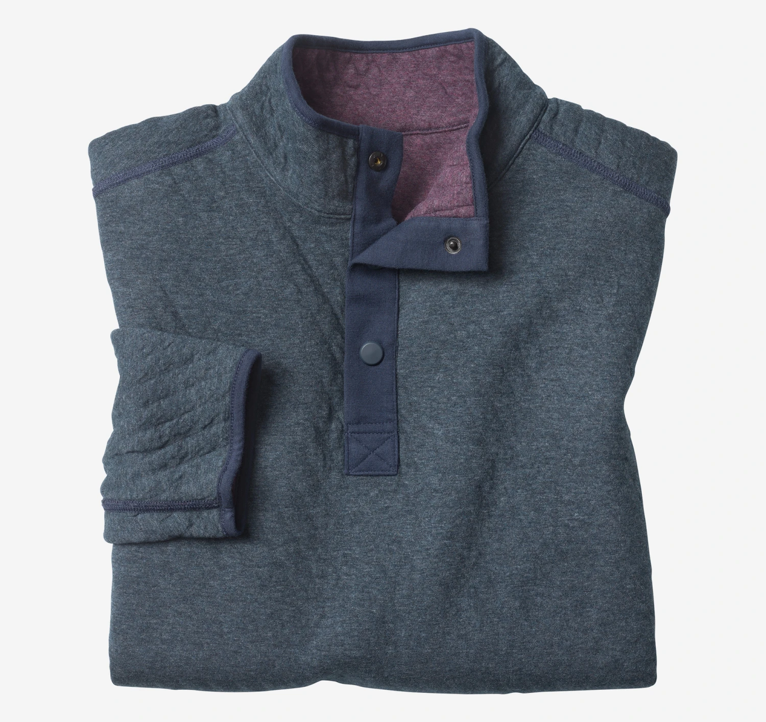 - Soft, double-faced quilted knit reverses to contrast shade for two looks in one.