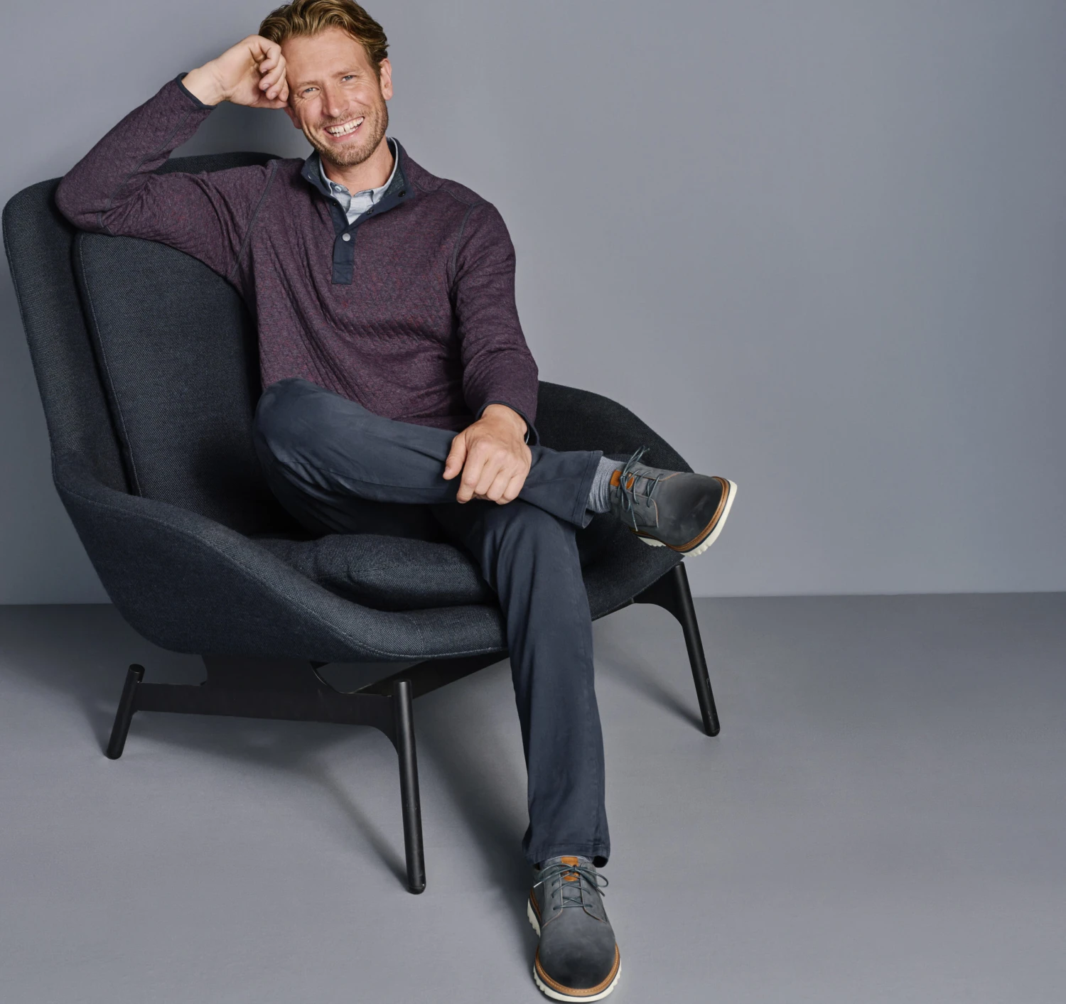 - Smooth contrast knit trim.