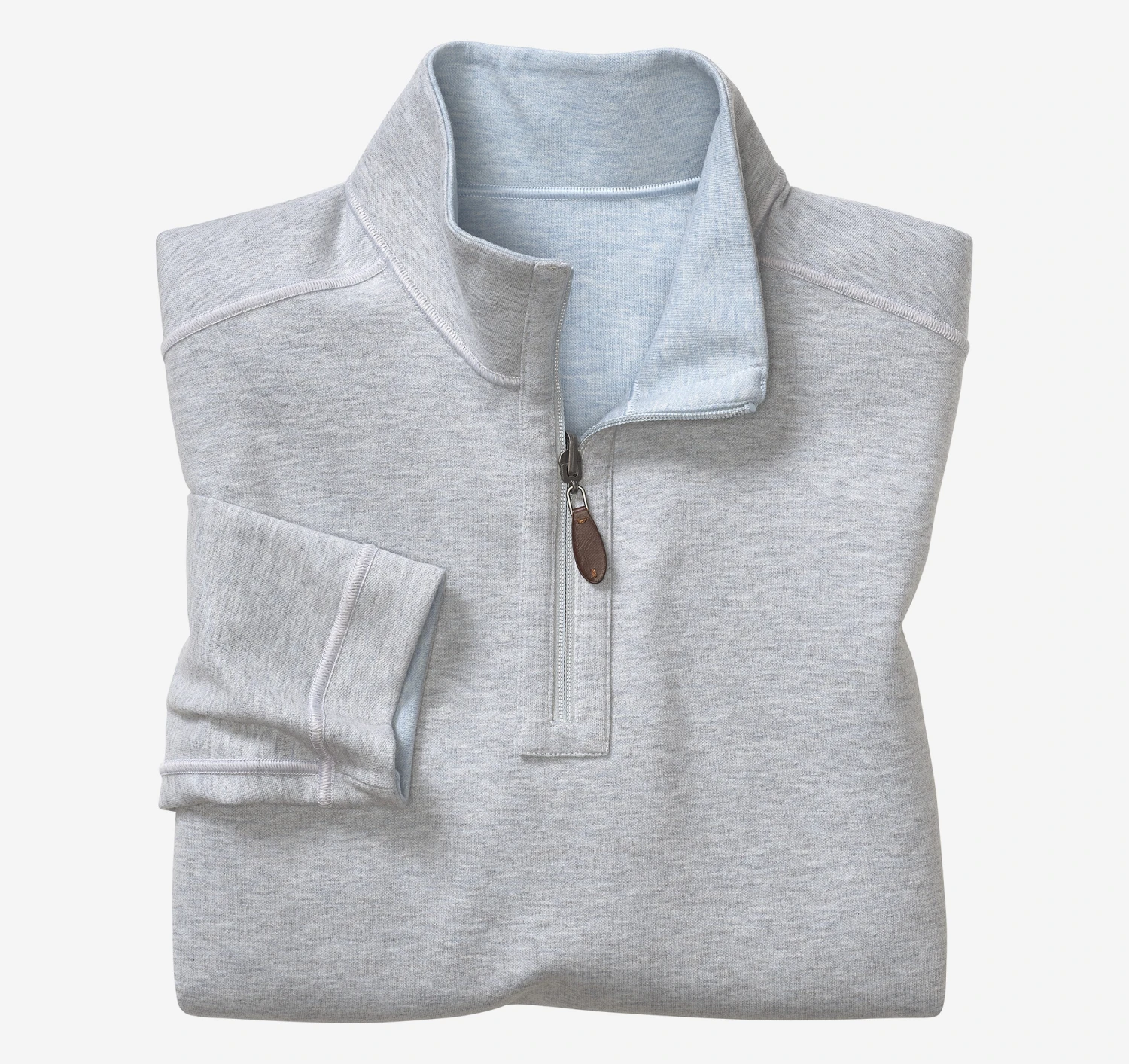 - Quarter-zip placket with leather-look pull.