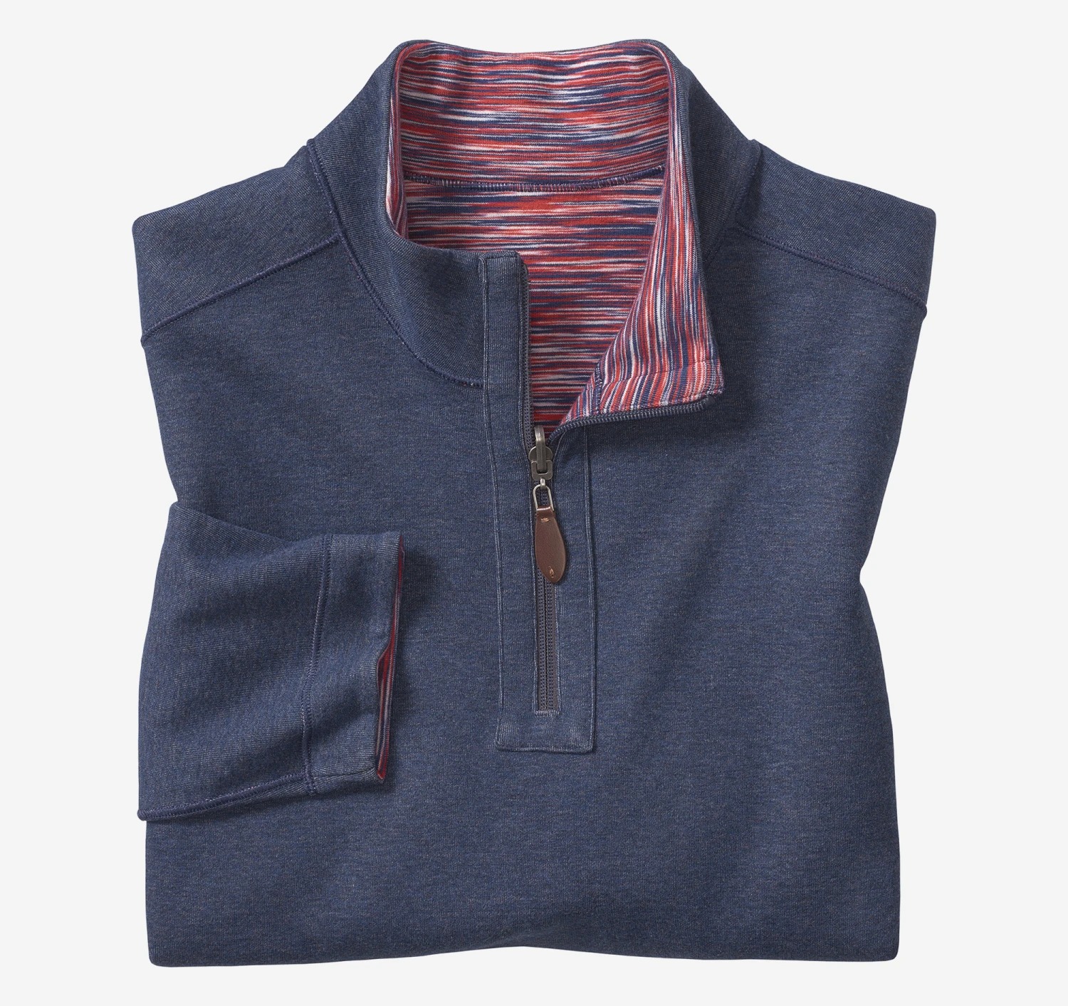 - Quarter-zip placket with leather-look pull.