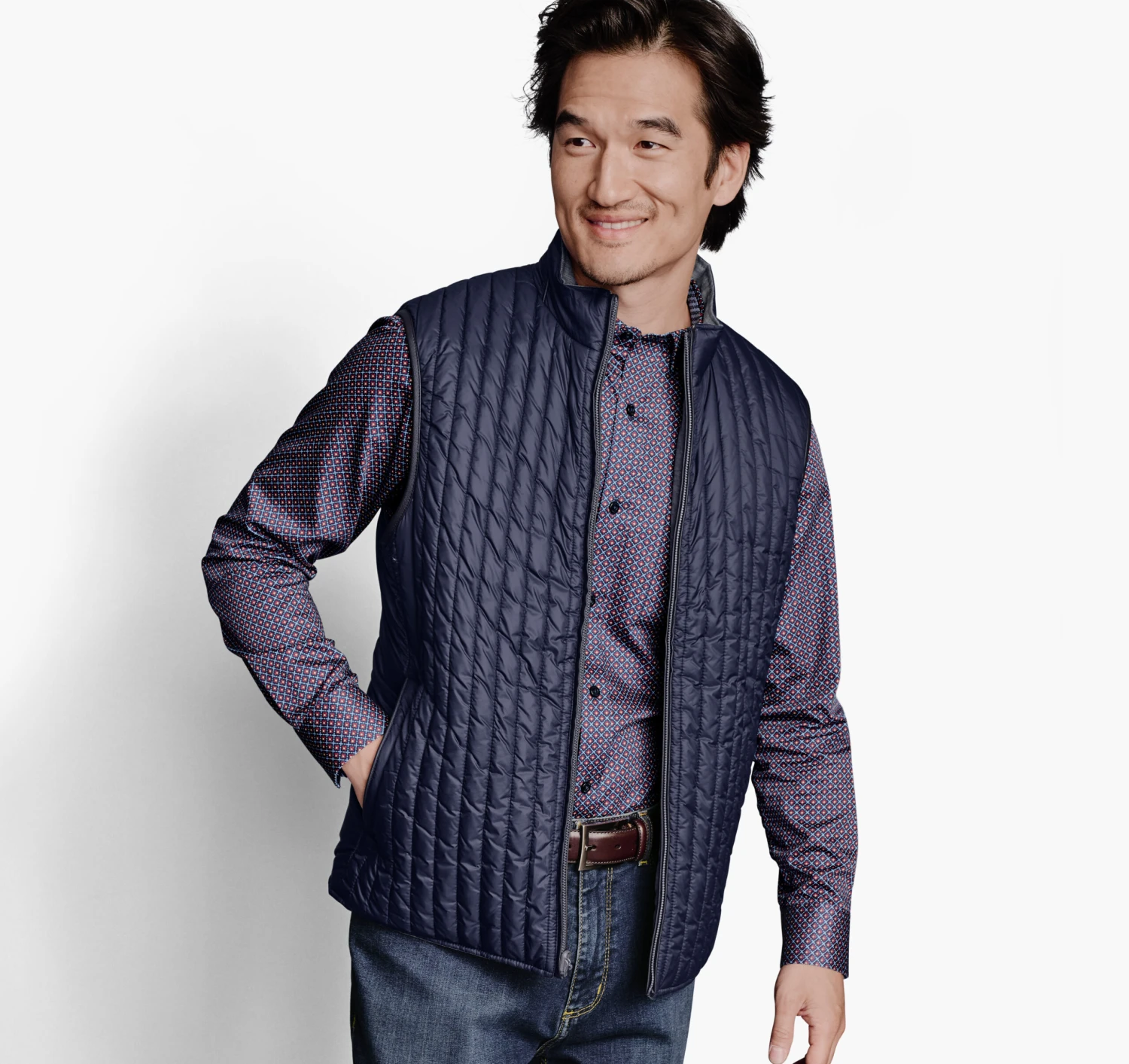 - Welt pockets on both sides.