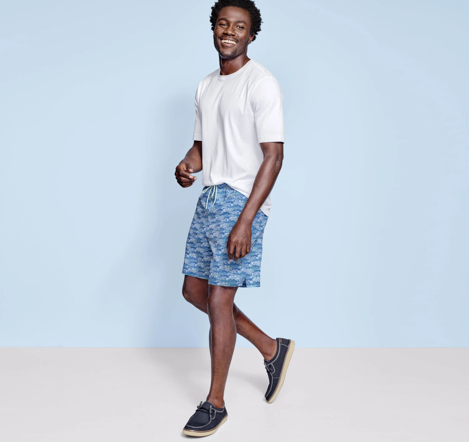 - Quick-dry, recycled-poly stretch fabric in exclusive prints and solids.