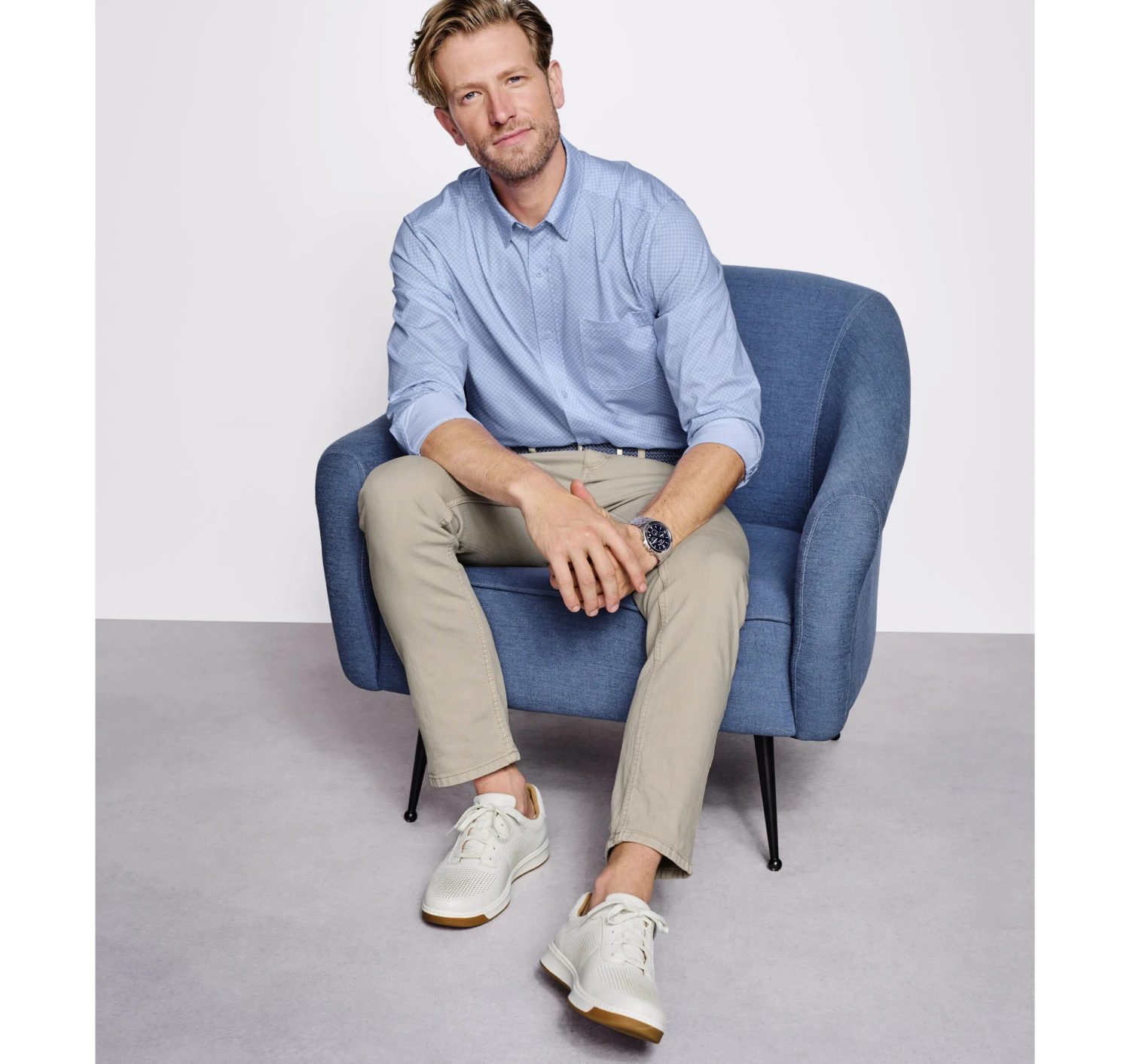 - The look of a woven dress shirt in soft cotton or cotton-blend knit offers exceptional versatility and comfort.