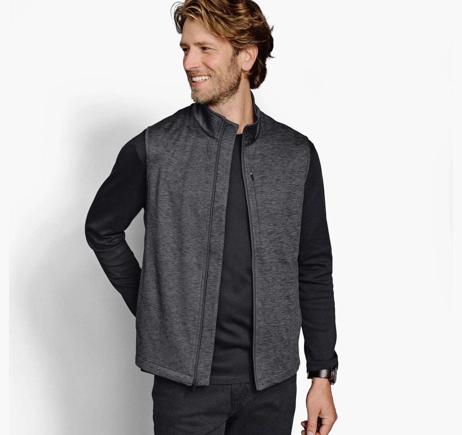 - Poly/spandex knit makes a perfect layer for on or off the golf course and lots of other places, too.